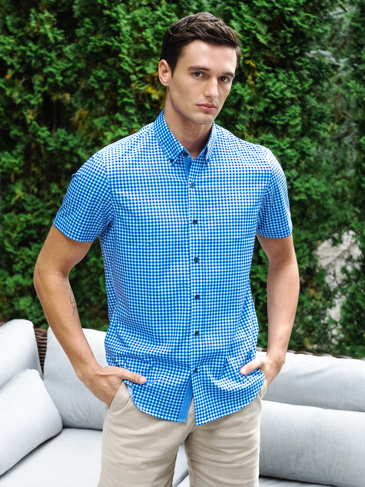 GINGHAM PERFORMANCE DRESS SHIRT