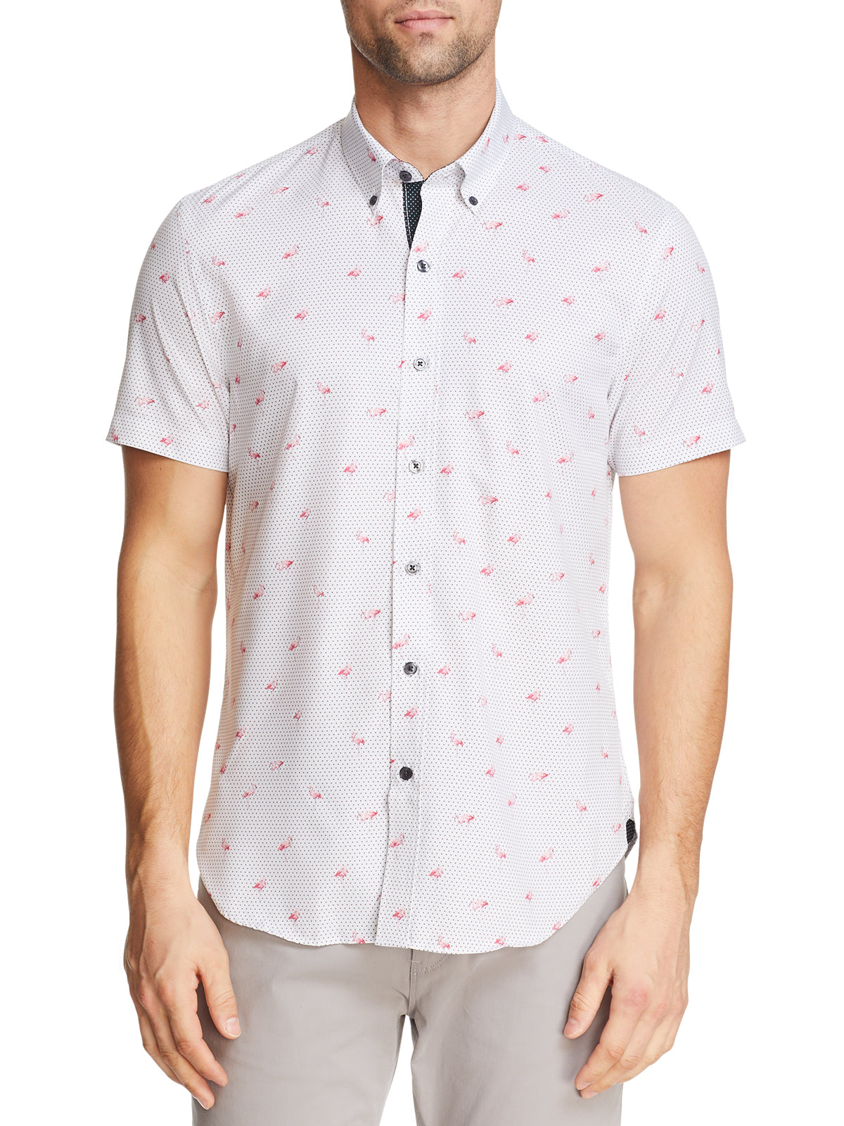 FLAMINGO PRINT PERFORMANCE STRETCH SHORT SLEEVE SHIRT