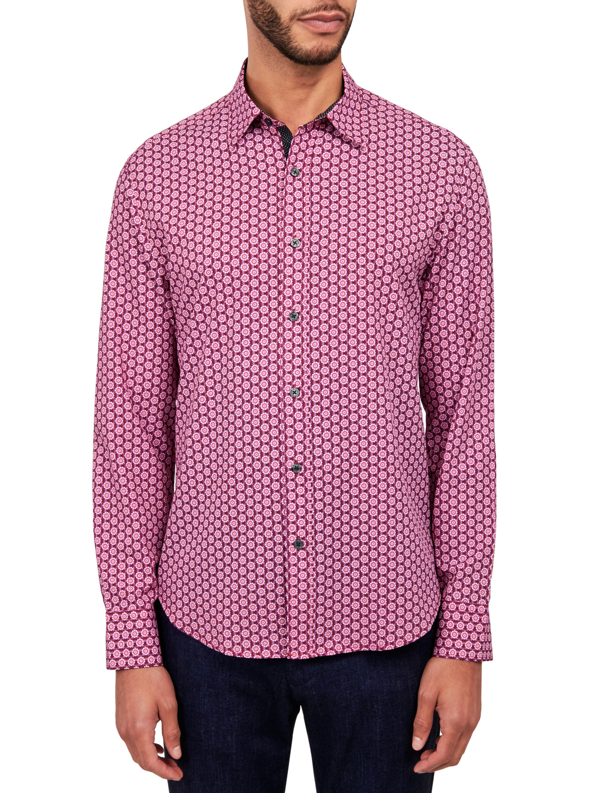 GRID DOT GEO PRINT PERFORMANCE DRESS SHIRT