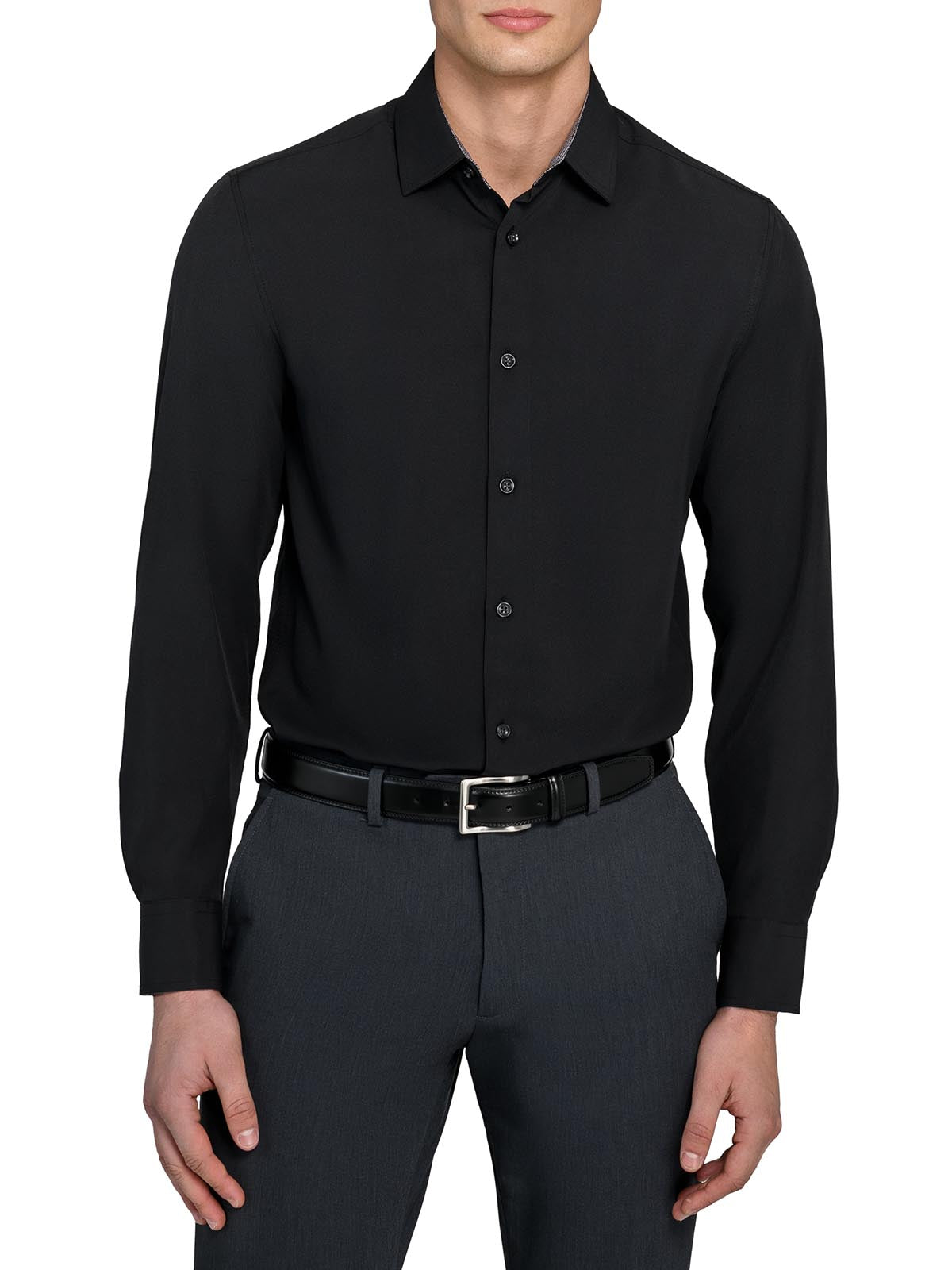 SOLID BLACK PERFORMANCE DRESS SHIRT