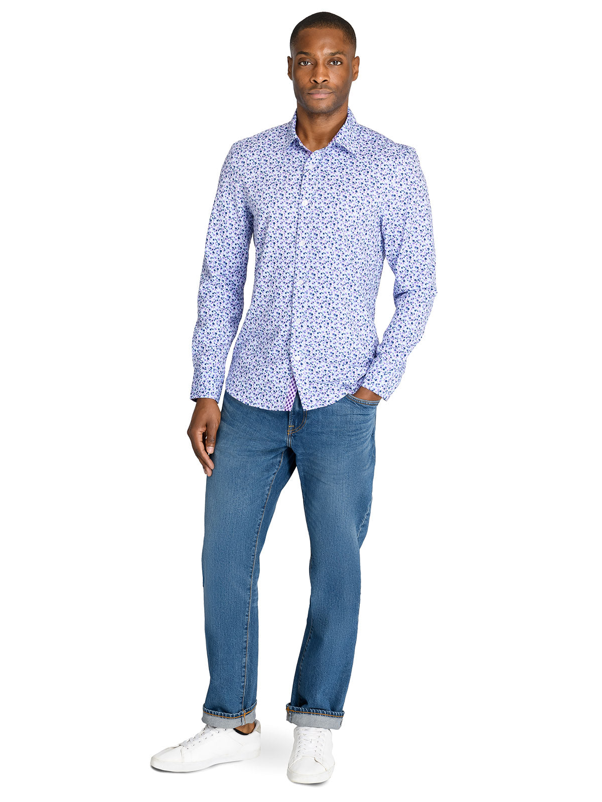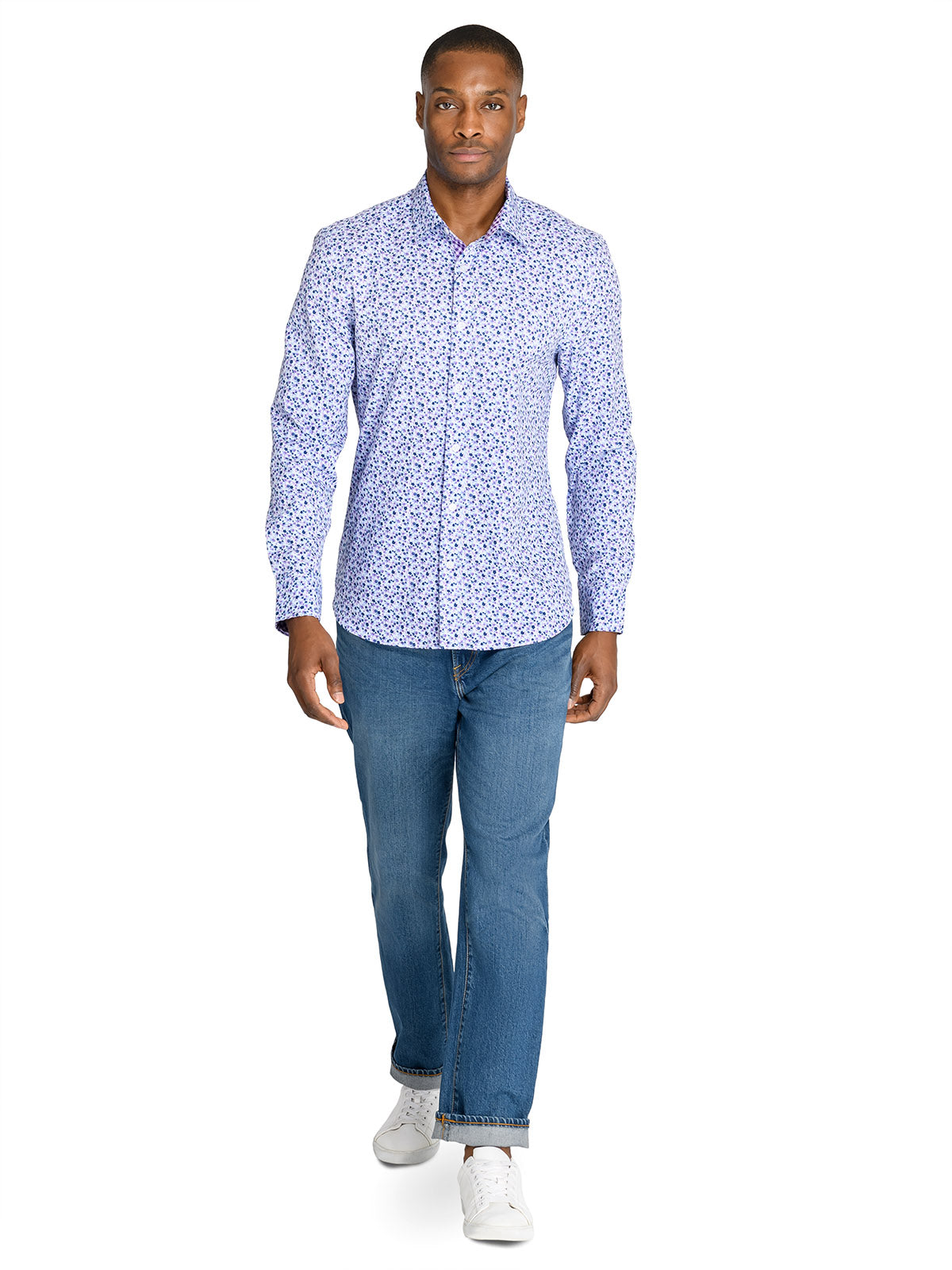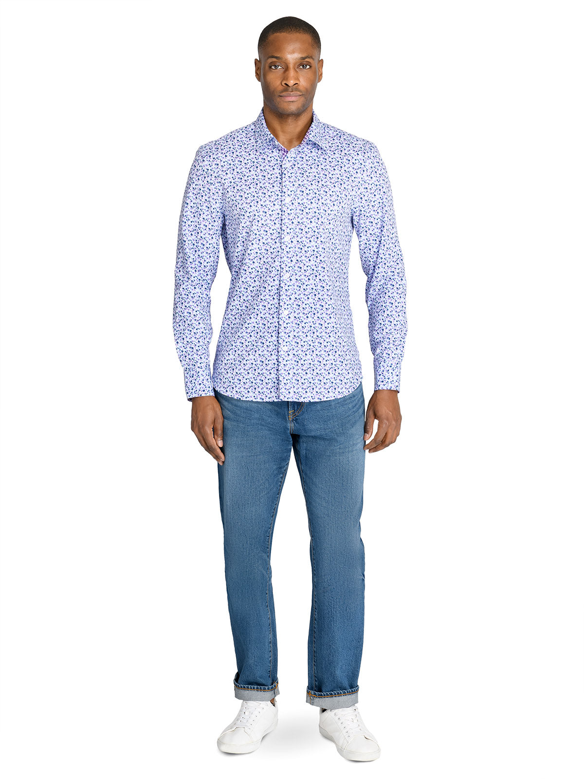 BLUE FLORAL PERFORMANCE DRESS SHIRT